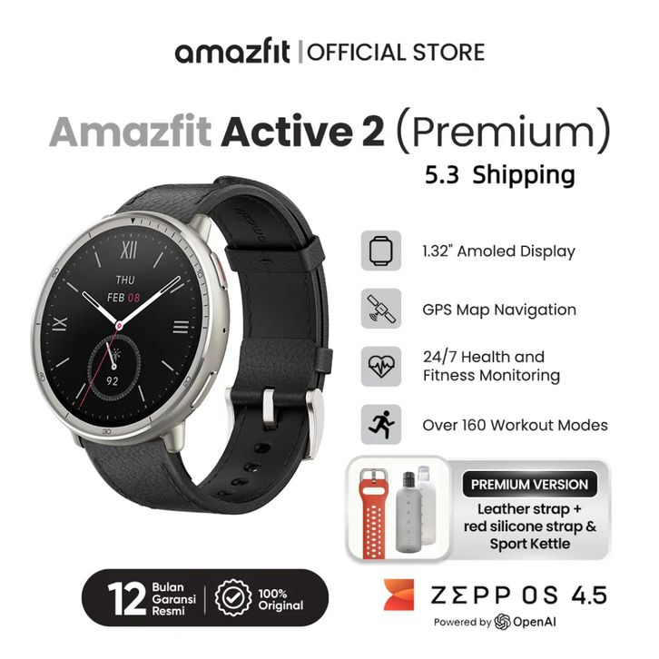 Amazfit Official Active 2 Premium Smart Watch 44mm |1.32 Sapphire Glass Screen| GPS | Map guide |
