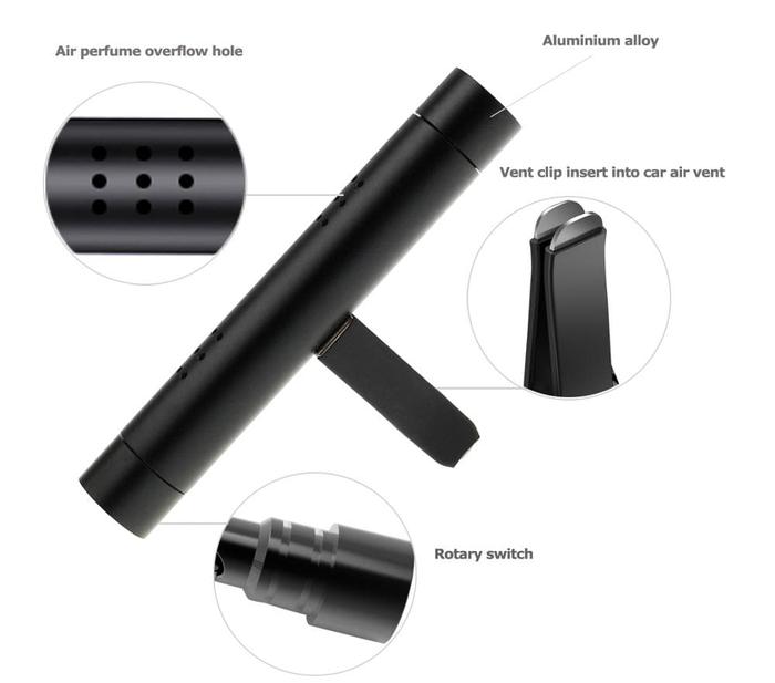 PARFUM PEWANGI MOBIL STICK CAR AIR VENT PREMIUM QUALITY WITH 5 REFIL BLACK