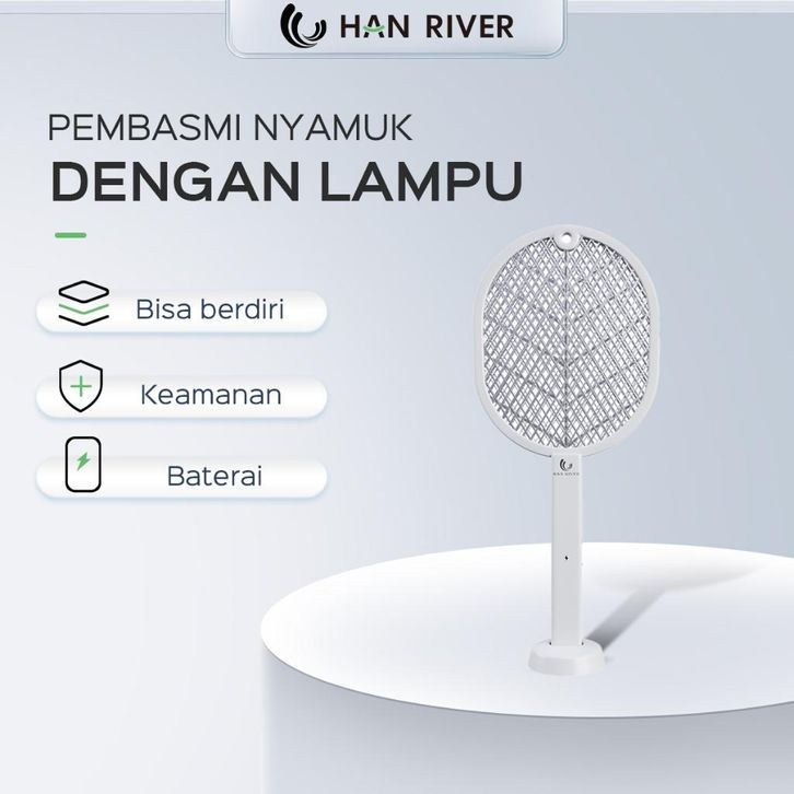 HAN RIVER Raket nyamuk 2 in 1 Mosquito killer HRDWP01WT putih(Dengan basis)