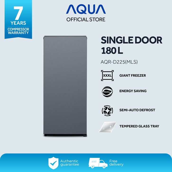 KULKAS 1 PINTU AQUA AQR-D225MLS 180 L LIGHT SILVER FREEZER SEMI AUTO DEFROST REFRIGERTAOR LEMARI ES TANPA BUNGA SALJU