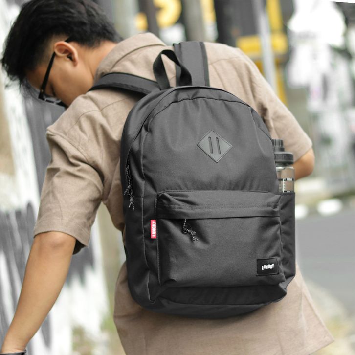Tas Ransel Sekolah Simple Laptop Ransel Pria Wanita Langky IYCE E Wave Black
