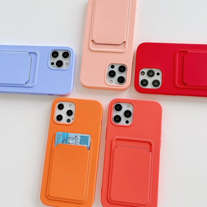 SILICON POCKET SLOT CARD CASE For IPHONE 11 12 13 14 15 PLUS PRO MAX