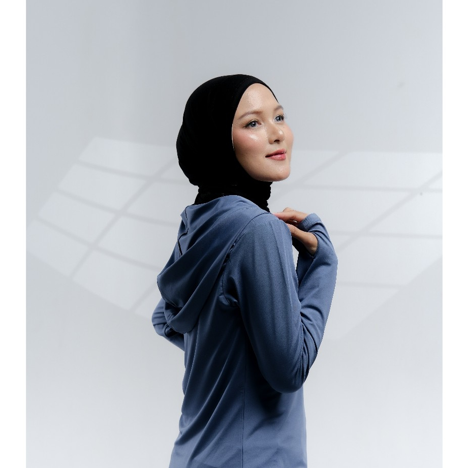 Elanda Baju Olahraga Muslimah Atasan Kaos Kupluk Hoodie Lengan Panjang Wanita Sport