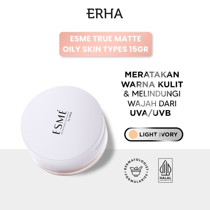 Erha Esme True Matte Oily Skin Types Light Ivory 15 gr - Bedak Tabur Kulit Berminyak Warna Light Ivory
