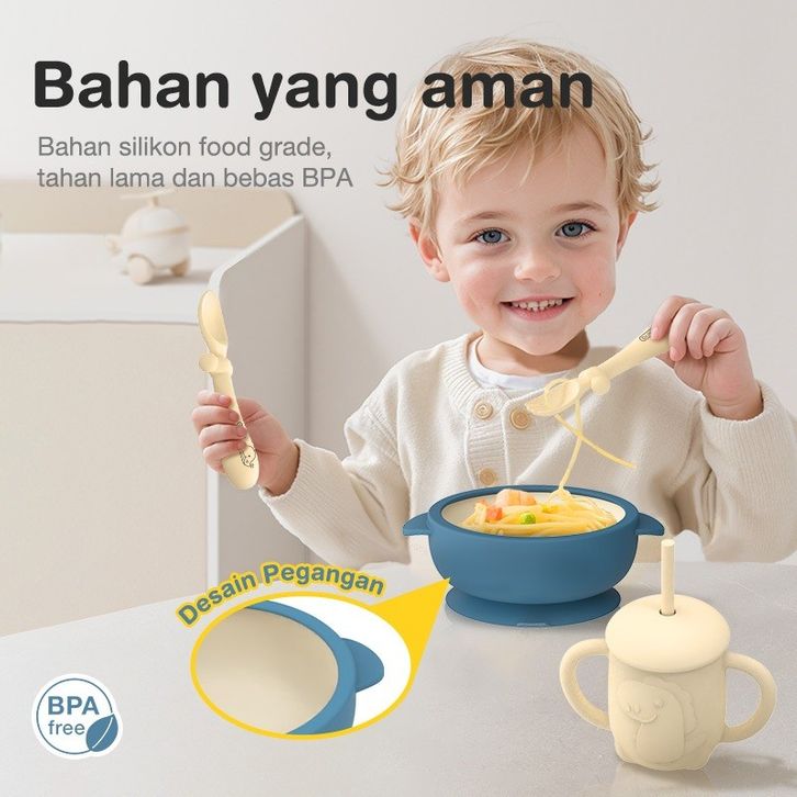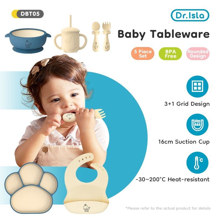 Dr.isla Celemek Makan Bayi Set 7Pcs BPA Free Piring Makan Anak Mangkuk Sendok Makan Bayi Botol Minum Anak Set Kotak Hadi