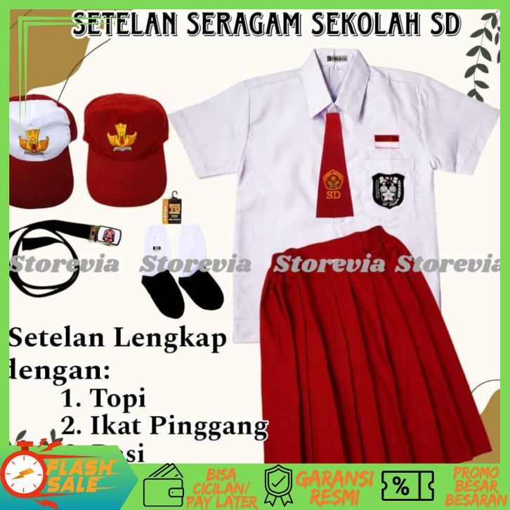 Storevia Setelan Super Lengkap Seragam Sekolah SD Merah Putih Pendek Perempuan Kelas 1 6 SD