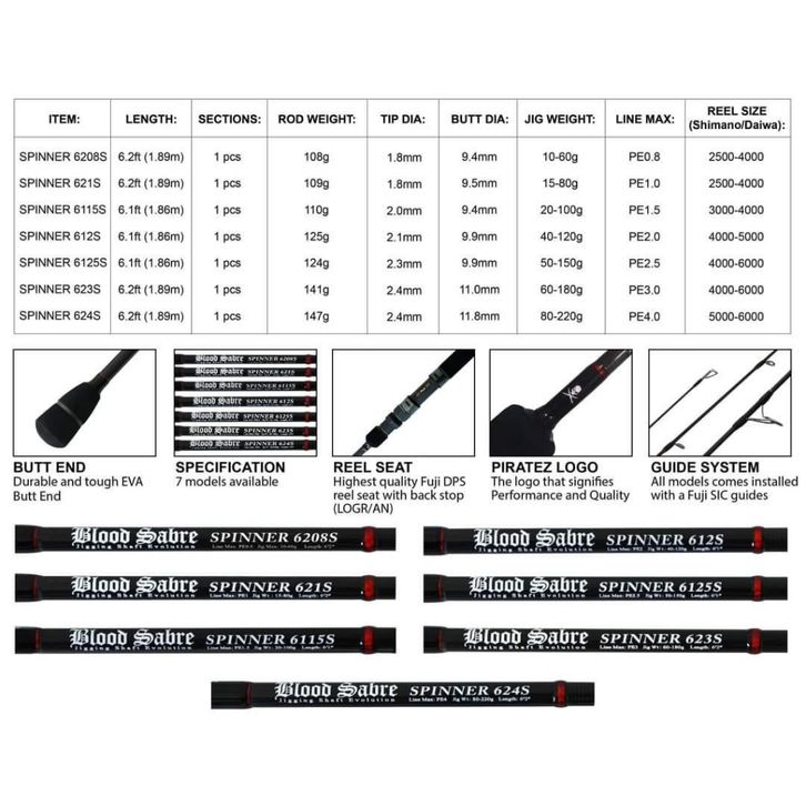 Piratez Strike Blood Sabre Spinning Model Joran Pancing Jigging