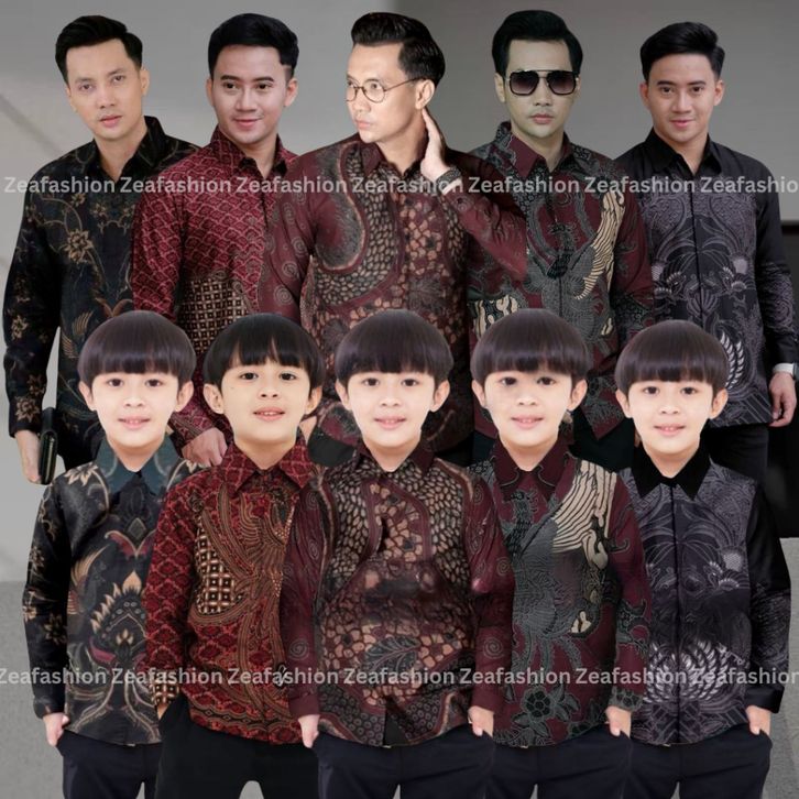 Batik Pria Lengan panjang Dewasa dan Anak Laki laki Batik Anak Pria Motif Burgundy enerc