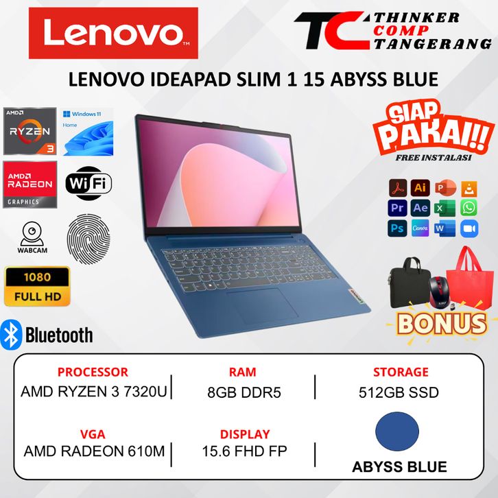 Laptop Gaming Lenovo Ideapad slim 1 15 AMD Ryzen 3 7320U 8GB DDR5 512GB 15.6 FHD Windows 11