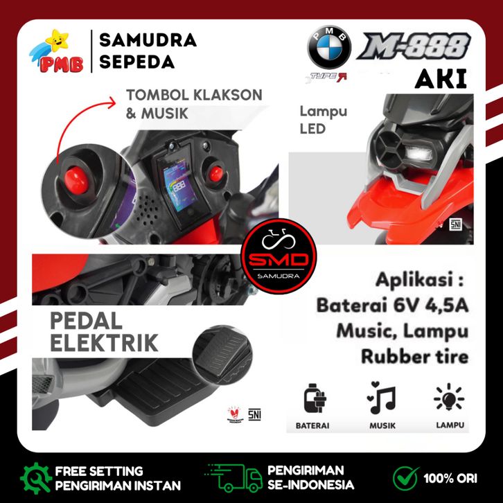 Motor Aki Mainan Anak Cas Listrik Roda 3 PMB M888 Murah BDG