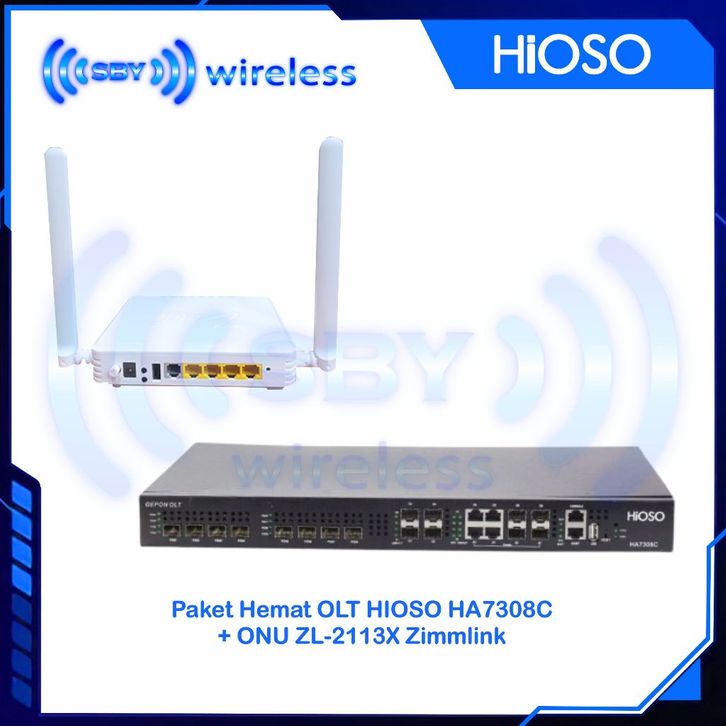 Paket Hemat OLT EPON HIOSO HA7308C (Non SFP) With ONU XPON ZL-2113X ONT Zimmlink