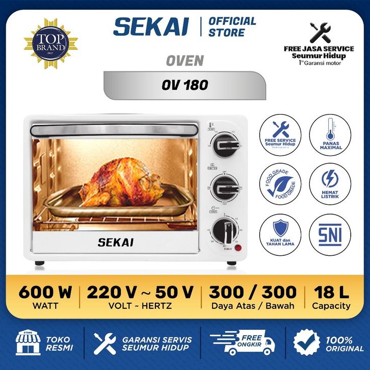 SEKAI Oven Listrik Low Watt Kapasitas 18L - 21L / Pemanggang Makanan Serbaguna Rotisserie - OV 180 / OV 190 / OV