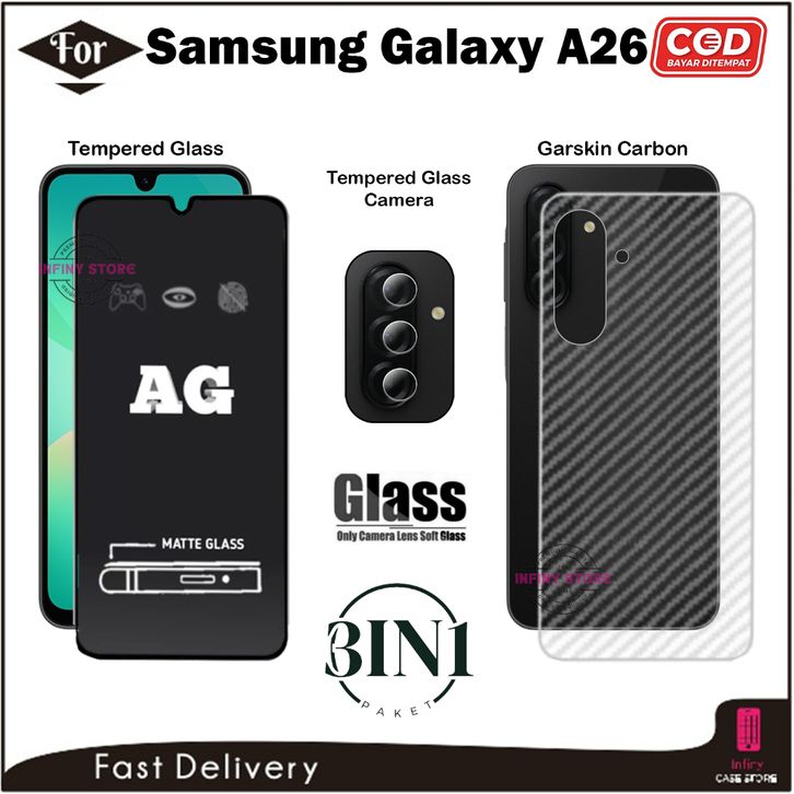 Promo Paket 3IN1 Anti Gores Samsung Galaxy A26 5G Tempered Glass Full Cover