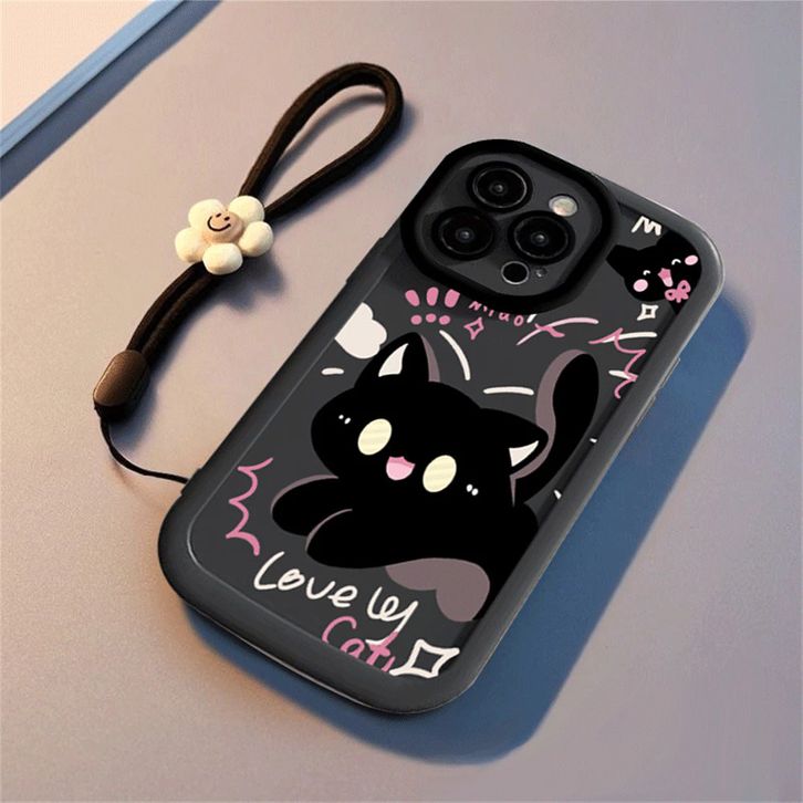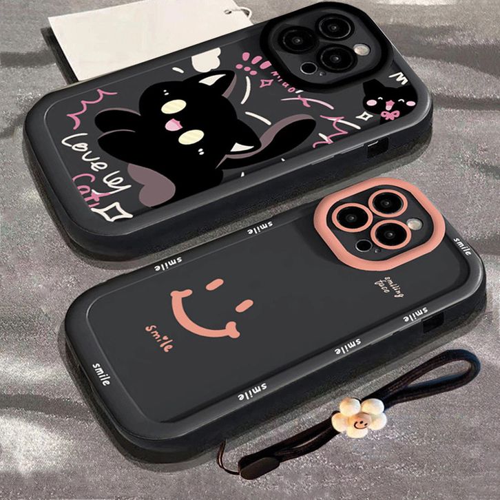 Casing Hp Softcase Silikon Cute Black Cat and Lucky Smile Untuk Galaxy A06 A16 A54 A05s A05 A14 5G A03S A04S A04E A35