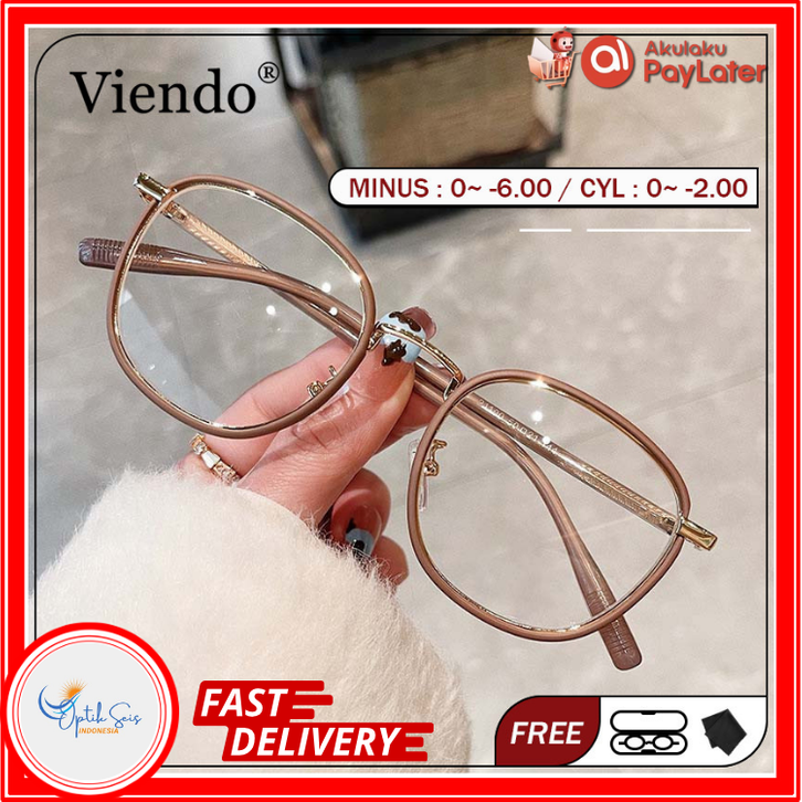 Viendo Kacamata Minus Anti Radiasi Blueray Photocromic Wanita Pria Cowok Korea Fashion Besi Bulat Frame 2 in 1 Bluecromi
