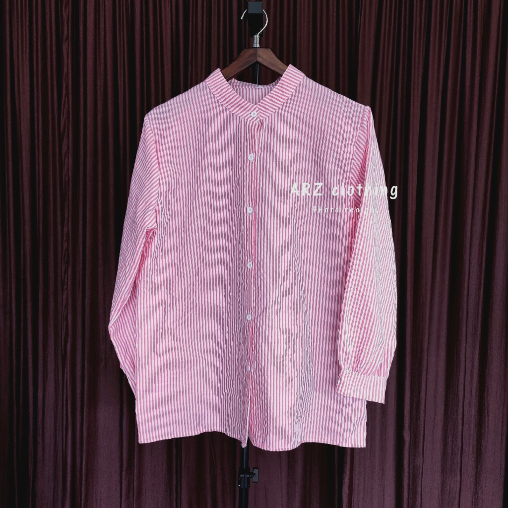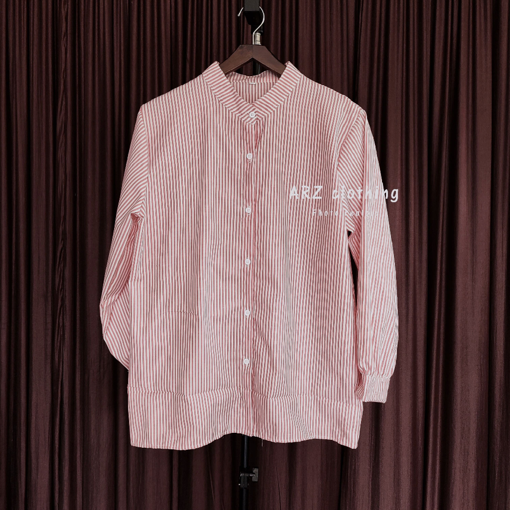 (Gratis Ongkir) Atasan Kemeja Motif Salur Wanita Stripe Terbaru Kekinian Size M L XL XXL 3XL JUMBO