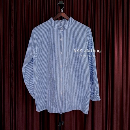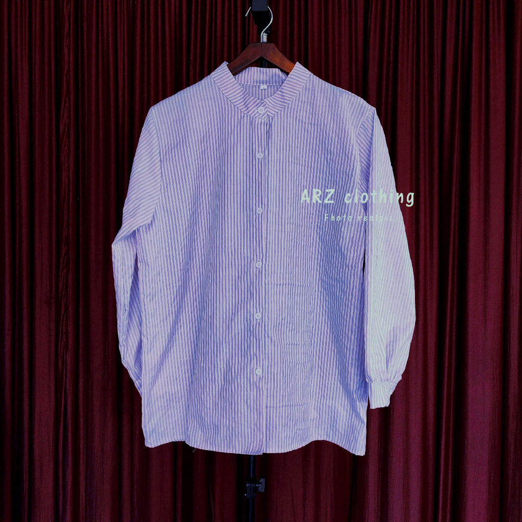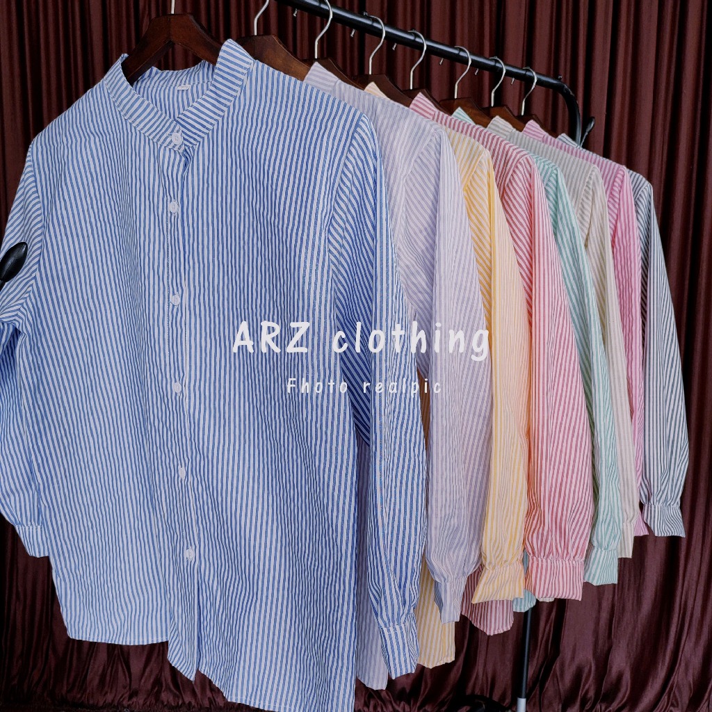 (Gratis Ongkir) Atasan Kemeja Motif Salur Wanita Stripe Terbaru Kekinian Size M L XL XXL 3XL JUMBO