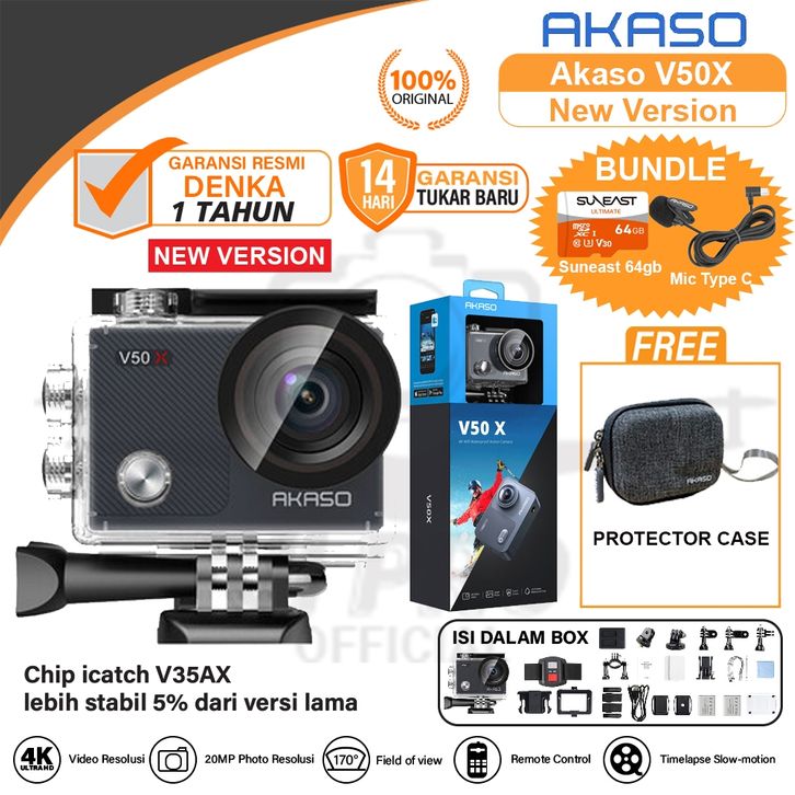 AKASO V50 X 4K New Version 30fps WiFi Action Camera - V50X - Resmi