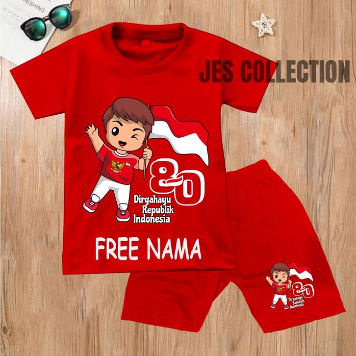 TERMURAH Setelan anak (FREE NAMA) kaos Kemerdekaan Indonesia 17 Agustus Umur 1 - 10 Tahun ihodf