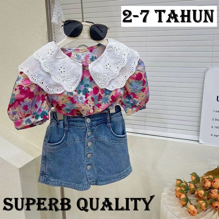 PROMO [meandboss] SSP56-Setelan Set Anak Perempuan Bubbly + Rok Celana Jeans ifild
