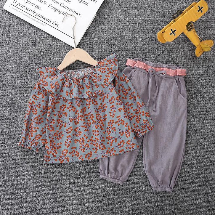 GROSIR Blue Cherry | 1-5Tahun Setelan Anak Perempuan Motif Bunga/Baju Setelan Katun Cewek Fashion igigs
