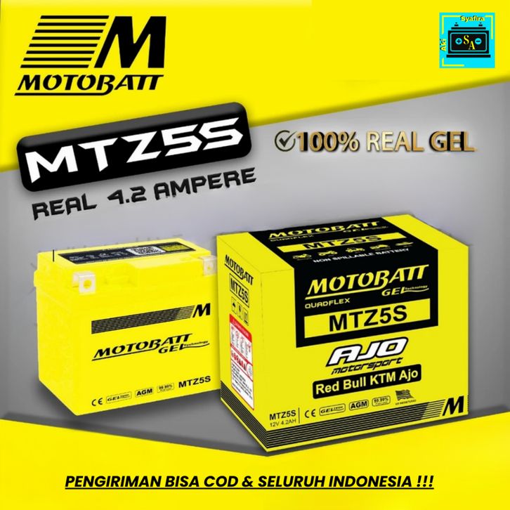 Aki Motor Beat Scoopy Vario 110 Revo Kharisma MOTOBATT MTZ5S GEL 4,2Ah
