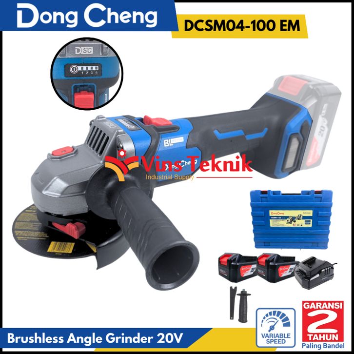 DongCheng DCSM04-100 EM Brushless Angle Grinder 4" Gerinda Baterai VARIABLE SPEED