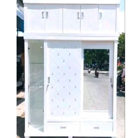 lemari pakaian 2 pintu jumbo. tinggi rak atas pintu 5. model kancing