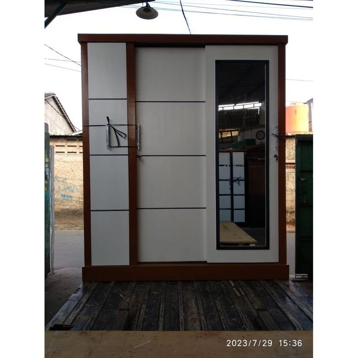 lemari baju hijab. pintu sleding tarik. kunci kaca Sorong.