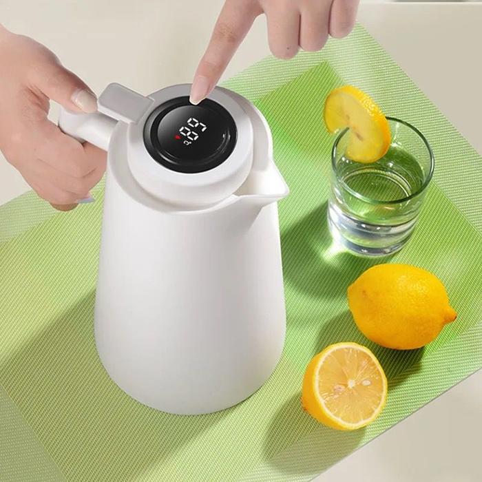 Teko Air Panas Dingin Dengan Alat Ukur Suhu Termos Air Panas Tahan Dingin Vacum 1L dengan Gagang kayu