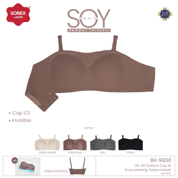 Sorex Invisible Bra Tanpa Kawat Busa Kait 4 Half Cup B Strapless SOY Bra Harian BH 9830