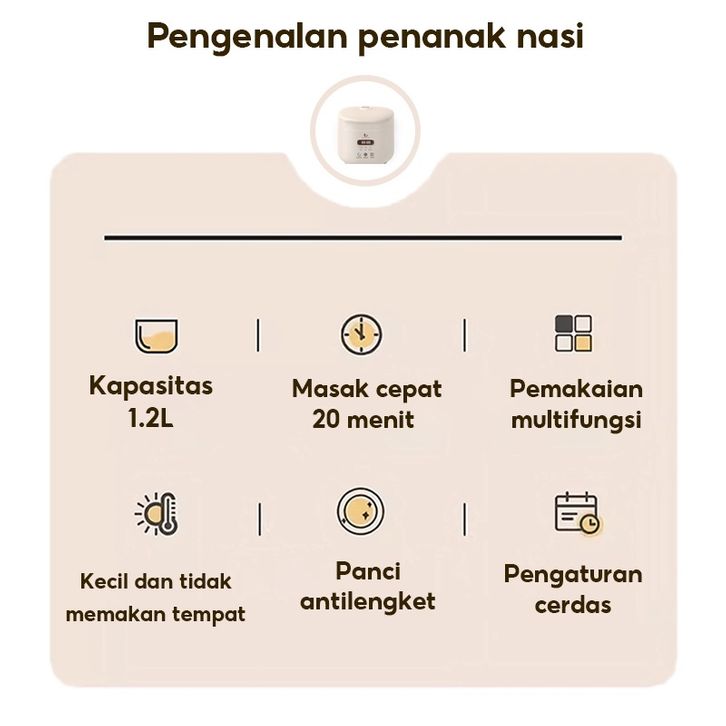HAN RIVER Rice Cooker 1.2L Magic Com Smart cooker Penanak nasi HRRC02WT