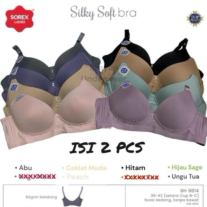 PAKET 1-3pcs BH SOREX Silky Soft 9814 size 36-42 Busa Sedang Tanpa Kawat Kait 3 Setara CUP B-C