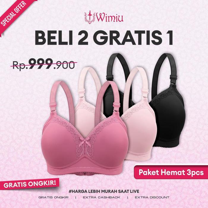 WIMIU PAKET HEMAT 3PCS BH Wanita Jumbo Bra Wanita Cup C D E Jumbo BH Tanpa Kawat Bra Beha Besar