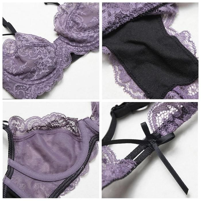 Set BH + Celana Dalam Setelan Wanita Sexy Elegant Renda Tanpa Busa Semi Transparan Stylish Bra