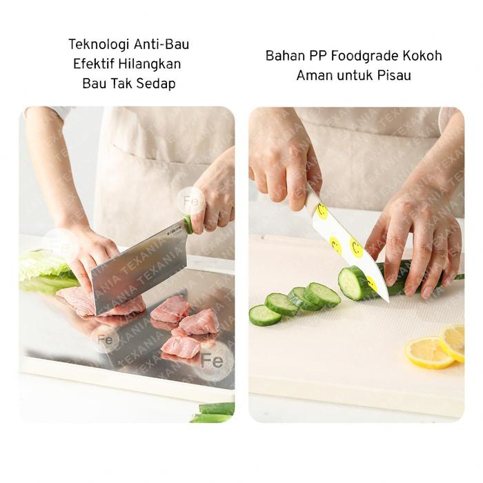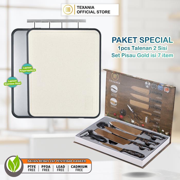 [5.5 SALE] TEXANIA PAKET Talenan 2 Sisi Kualitas Premium - Pisau Gold Stainless Food Grade isi 7pcs Kitchenware