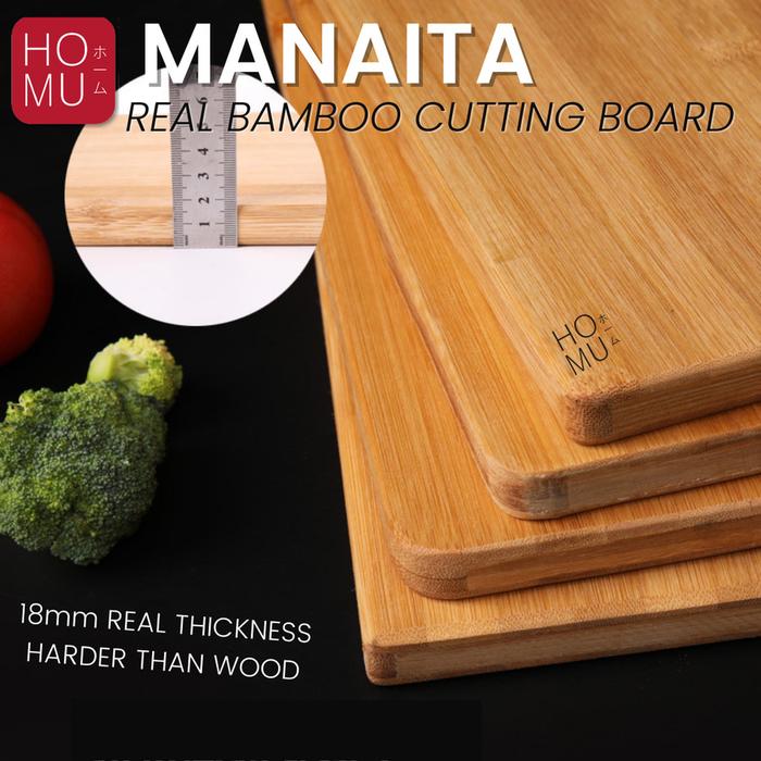 HOMU MANAITA TALENAN BAMBU ASLI REAL BAMBOO SINGLE PIECE NATURAL CUTTING BOARD TEBAL KUALITAS EKSPOR