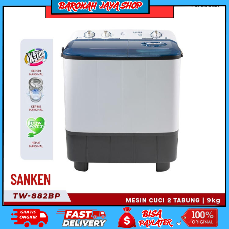 Sanken Mesin Cuci Twin Tub TW-882BP 9kg Mesin Cuci 2 Dua Tabung
