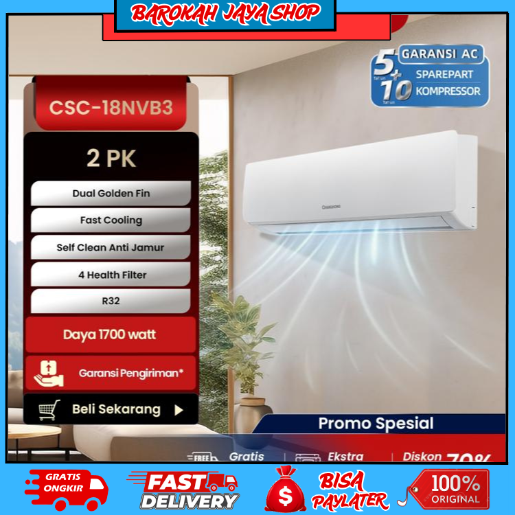 CHANGHONG AC 2 PK STANDARD CSC 18NVB3 [INDOOR + OUTDOOR UNIT ONLY] [FAST COOLING] [ECO MODE]