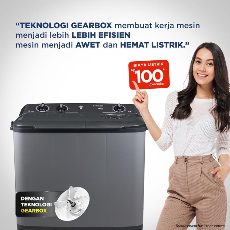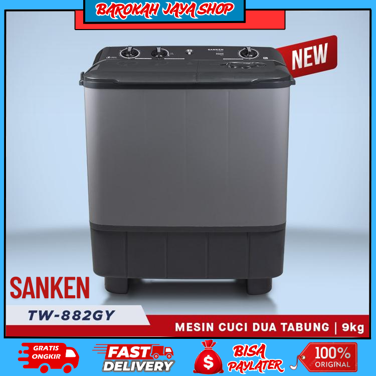 Sanken Mesin Cuci 2 Dua Tabung TW-882GY Twin Tub 9Kg Silver