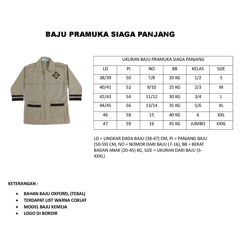 BAJU SERAGAM SEKOLAH PRAMUKA PEREMPUAN SIAGA SD ANAK LAKI PANJANG-PANJANG KELAS 1- 6 BAJU SERAGAM MURAH TERBARU