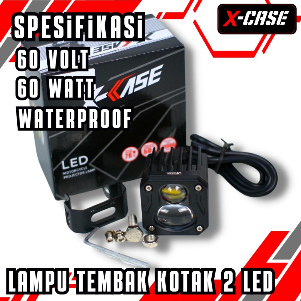 X-Case Lampu Tembak Kotak 2 Led 60 Volt 60 Watt Waterproof Universal