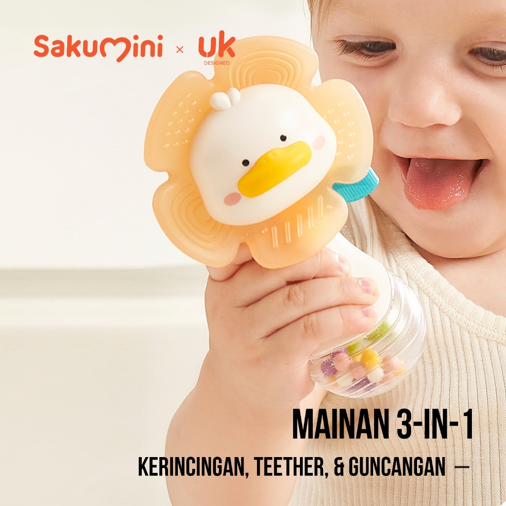 SAKUMINI 2IN1 TEETHER MAINAN ANAK BAYI KERINCINGAN RATTLE RING SHAKER SILICONE