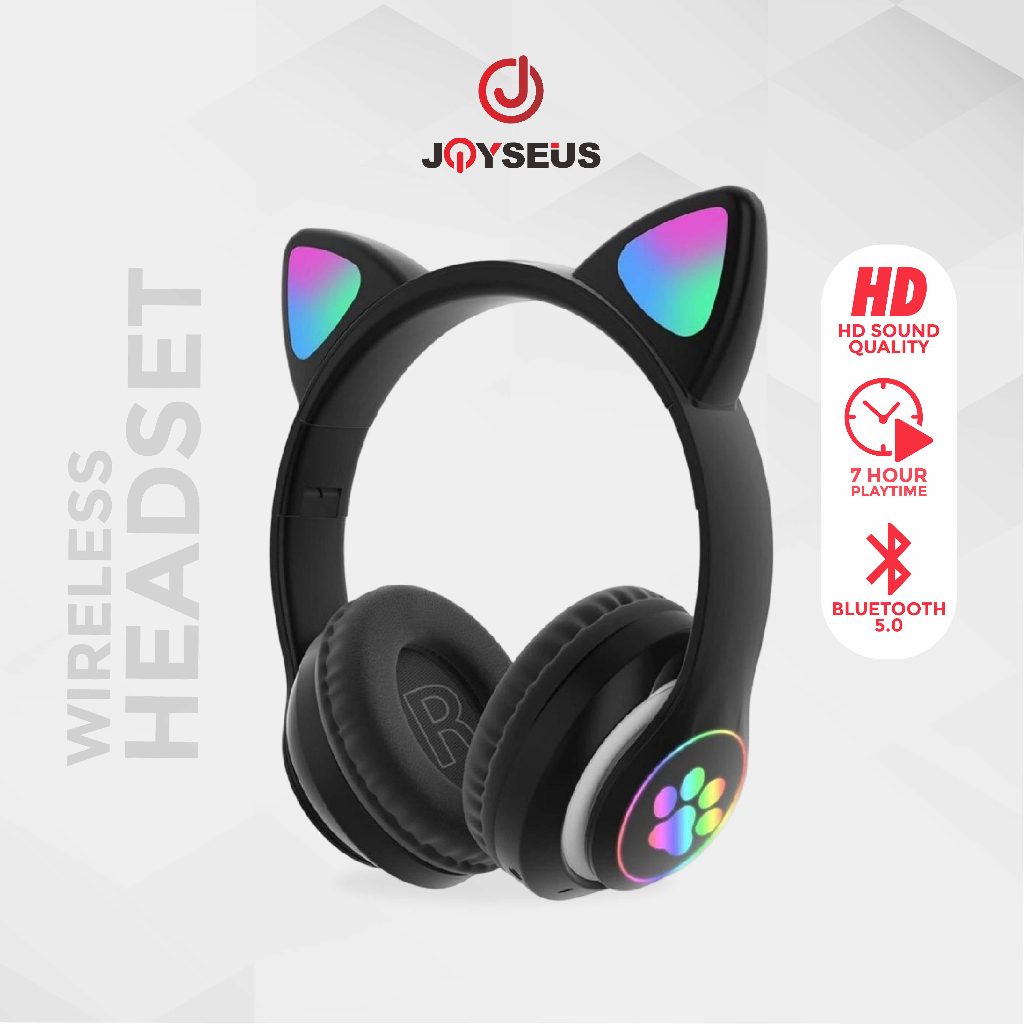 JOYSEUS LED BLUETOOTH KUCING CAT HEADPHONE BLUETOOTH 50 WIRELESS HEADPHONES WITH MIC HIFI STEREO