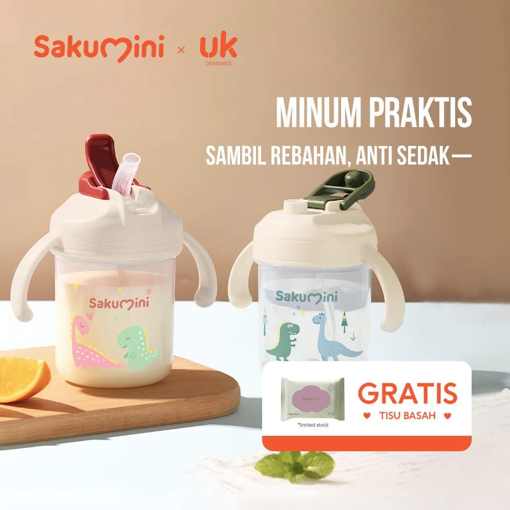 SAKUMINI 3IN1 GELAS MINUM SEDOTAN ANAK TRAINING STRAW SIPPY CUP ANAK BAYI