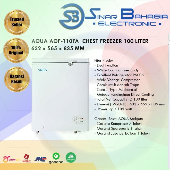 AQUA AQF-110FA CHEST FREEZER 100 LITER 632 x 565 x 835 MM (NEW) (KHUSUS BANDUNG)