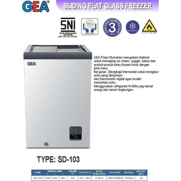 Sliding Flat Glass Freezer 103 Liter Kaca Datar SD-103 GEA