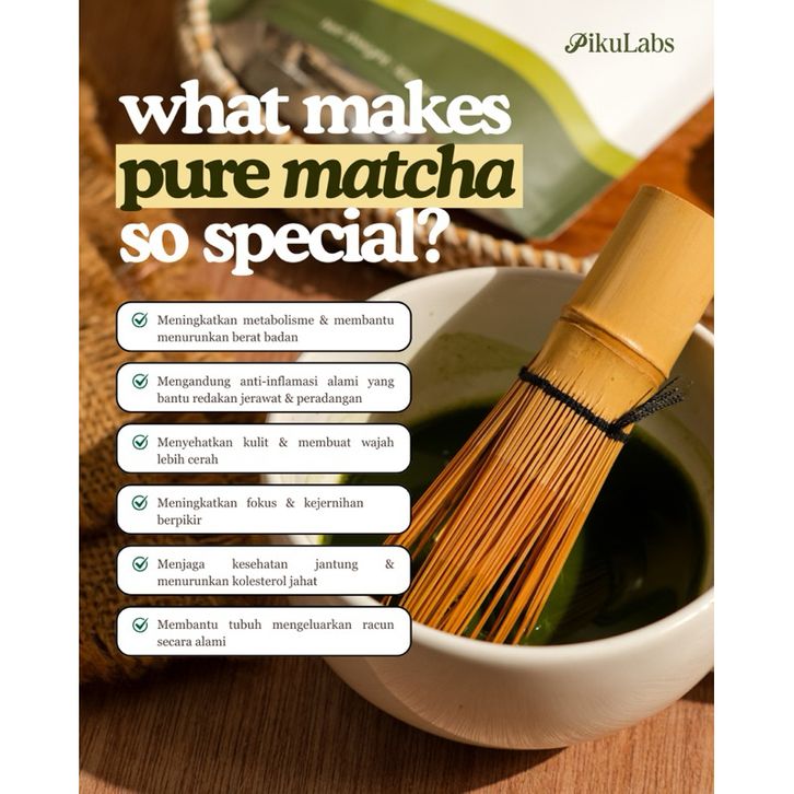 PikuLabs Pure Matcha Powder 100gr | 100% Pure, No Additives