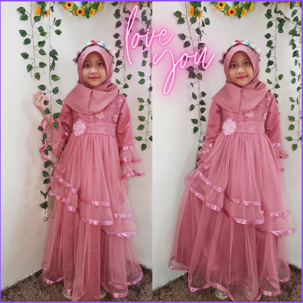 Baju Pesta Anak Brukat Itsme.Collection Gaun Muslim Mewah 3-10 Tahun