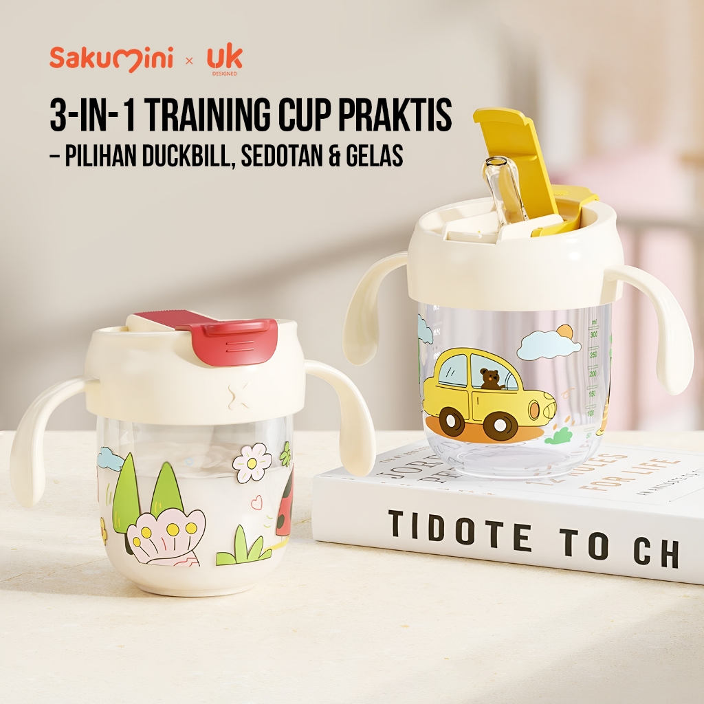 SAKUMINI 3IN1 TRAINING CUP DUCKBILL STRAW GELAS CANGKIR MINUM SUSU SEDOTAN ANAK
